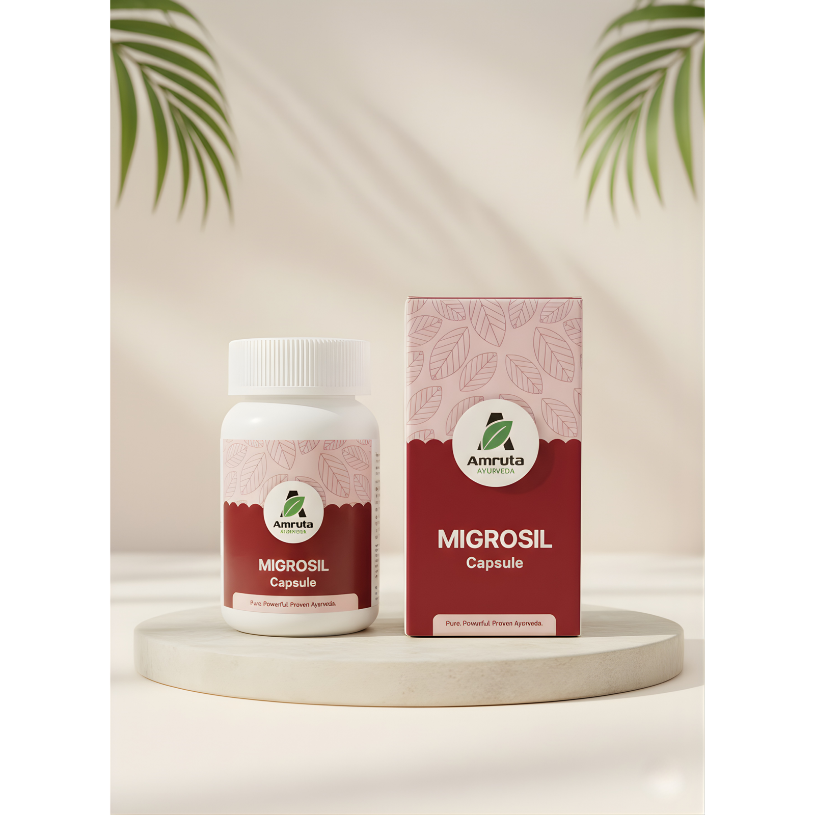 - MIGROSIL is an Ayurvedic proprietary formulation designed to help support individuals dealing with migraine, stress, insomnia, and sleeplessness. Crafted with a blend of classical herbs and mineral preparations, it helps promote mental calmness, neurological balance, and natural sleep support.Formulated as vegetarian HPMC capsules for better absorption and convenience.